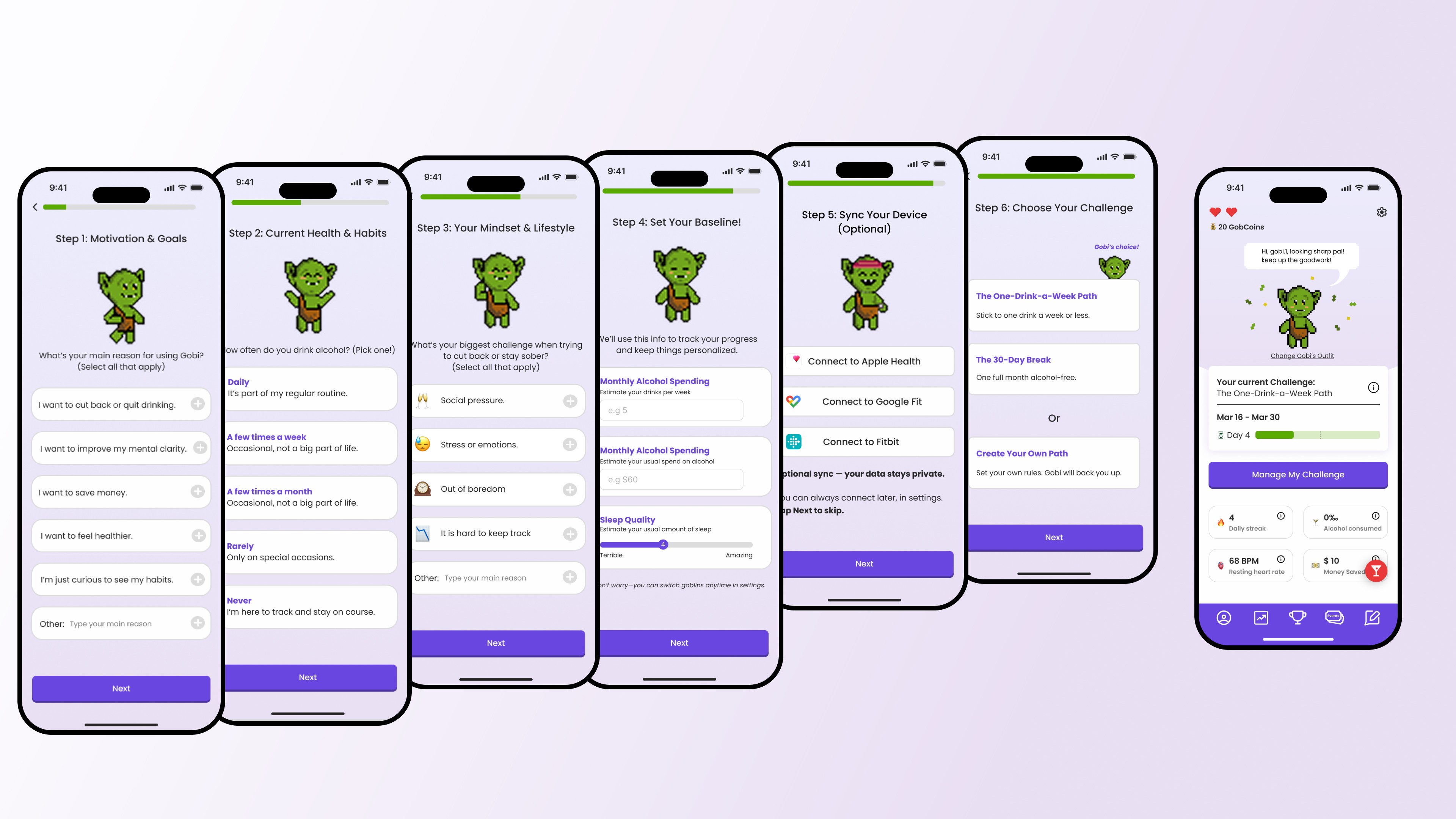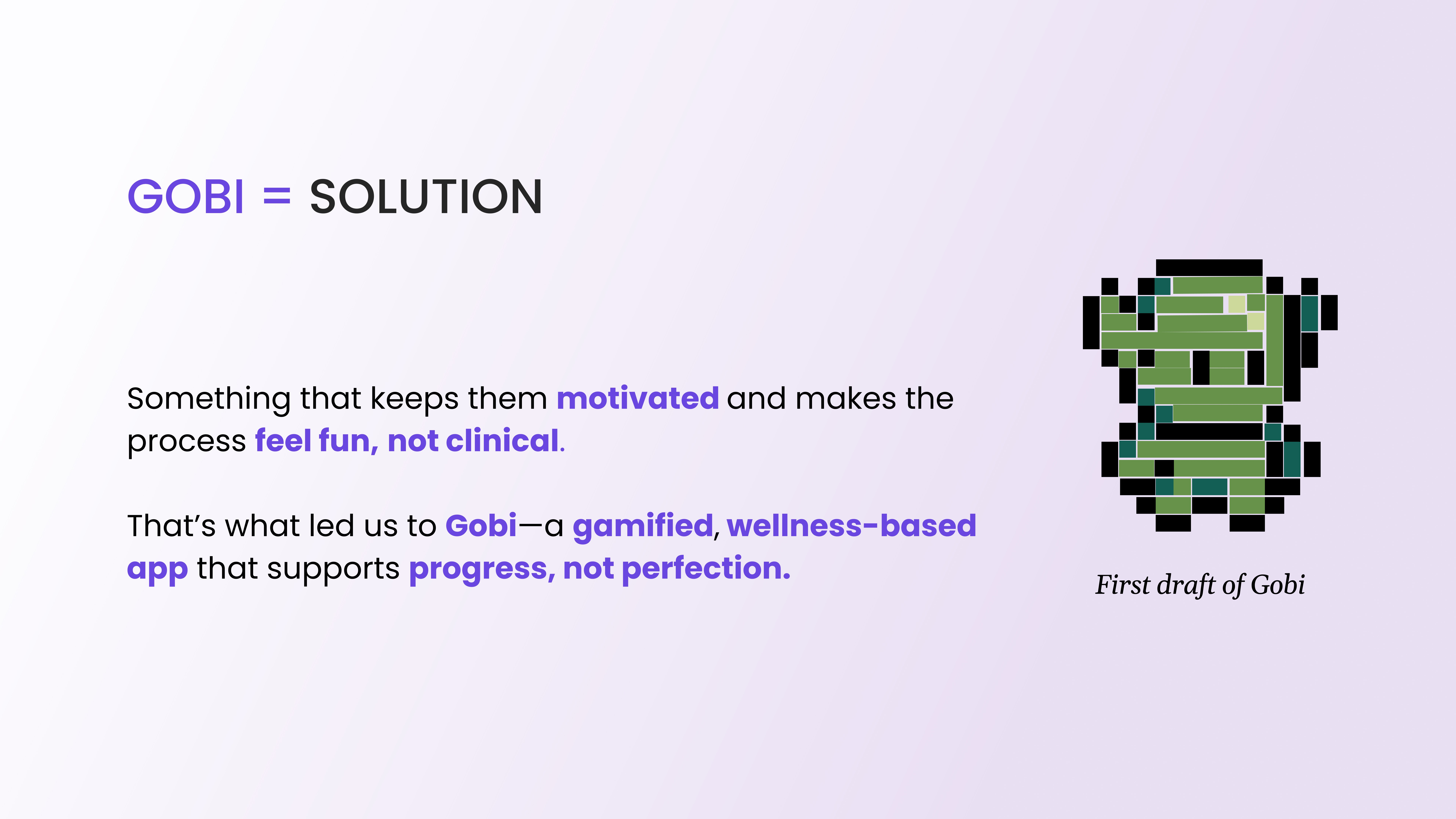 That insight led to Gobi, a gamified wellness companion that helps users build awareness, track habits, and celebrate small wins.